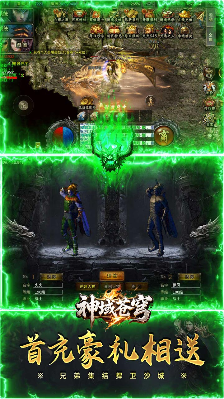 《神域苍穹》本服是185单职业专属特色代金券版本带跨服,内容丰富。每天领取648真充红包,白嫖冠名奖励,白嫖累充奖励。首爆、打怪都可获得代金券,代金券可无限制兑换直购币。各种其他隐藏地图,BOSS非常多,散人玩的开心,老板激情无限!