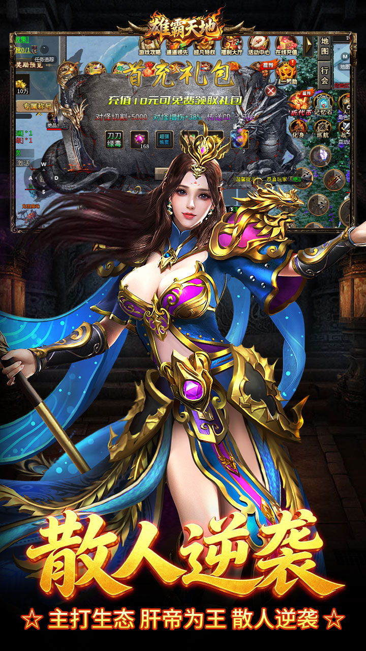 《雄霸天地》本游戏是一款打专属装备提升类游戏,每个地图都有每种不同的专属,打到一件好的专属就能起飞!游戏内置丰富的剧情探险内容,玩家可以在体验趣味剧情的同时不断提高战力,告别传统枯燥的无脑刷怪玩法!