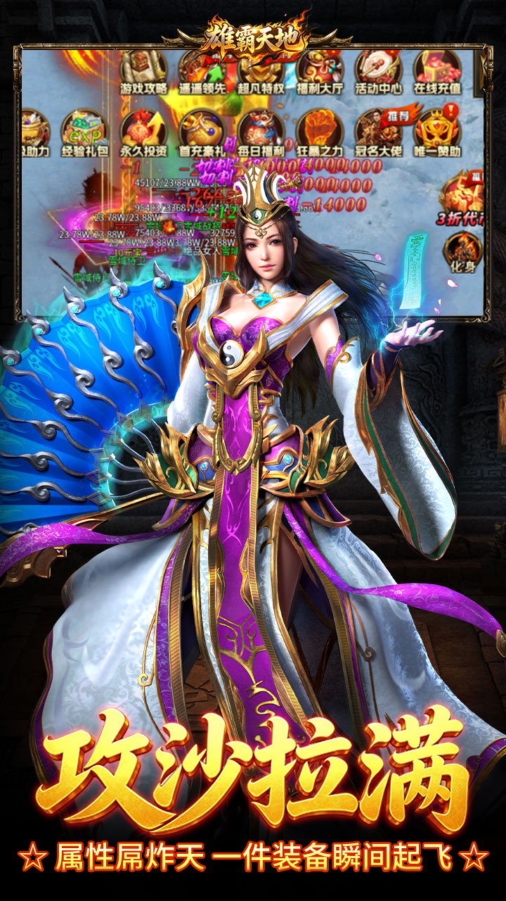 《雄霸天地》(狂送代币免费版)是一款融合热血武侠与策略卡牌的高福利MMORPG手游,上线即送海量代币、神装、VIP特权,零门槛畅玩全服核心玩法,真正实现“登录就变强,开局即巅峰”!