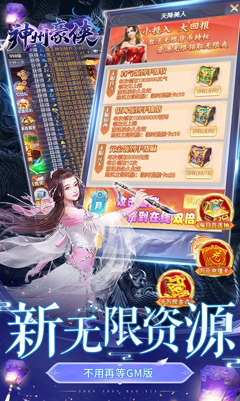现在就加入《神州豪侠(送千万现金点)》,领取专属福利,成为一代武林宗师!点击下载,马上启程你的武侠传奇之旅吧!