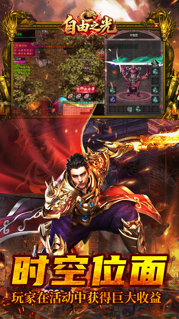 《自由之光》加入我们,体验""游历诸天万界”的剧情,让你在全大陆的冒险中,从一名普通散人成长为主宰世界的开拓者。可自由更换,解锁""天庭”、""龙宫”、“屠魔山谷”、“珊瑚迷宫”、“酆都""等精彩剧情,让你的冒险之旅充满无限可能!丰厚“新手福利”:立即加入,即可获得""自动捡物”、“自动范用拾取”、""自动回收”、“自动吃经验”、“自动吃元宝”“自动挂机""等实用功能,让你的起步更加轻松!穿越“时空位面”:探索独特的位面玩法,穿梭于不同的“时空位面”,收集“绝版时装”,让你的角色独一无二,免费充值福利:主线与支线任务将免费为你带来高额充值福利,丰富的剧情和耐玩性,让你的逐梦之旅更加精彩。独立大陆特色::每个大陆都有其的剧情、位面地图、专属装备和追梦神器,等你来发现。保值交易系统:装备、材料、货币保值,我们提供超大交易平台,让你的本服资产得以充分利用。