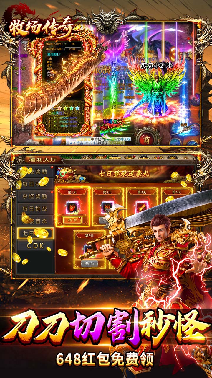 《牧场传奇》是一款全新经典单职业中变传奇,永久内置3折福利,开局免费赠送豪华首充,开局自动拾取、范围拾取、刀刀绿毒、刀刀切割,每天登录、在线、打BOSS均可领取海量红包。游戏玩法多样,养成神器神葫全屏秒杀全屏切割,我们保留对传奇的初心不变,一切装备都可游戏产出,任何货币都可游戏产出。只要你肯花时间,就可以吊打一切!